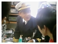 水産教材の資料室見学、ハワイ・マグロ実習船「千潮丸」の体験乗船と、ロープワークを実践してみる。