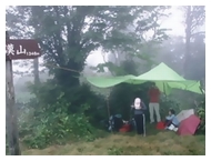 下山です。雨雲が目の前を、ものすごい勢いで動いていきます。向かいの山のむこうは青空でした。 |