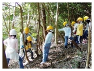 川西市の「黒川・桜の森」でコナラとクヌギを通して、自然への関心を高める自然体験活動。クヌギの植樹、里山の観察、里山の手入れなどをおこなう。 |